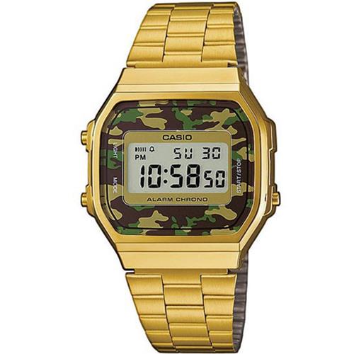 【CASIO】 復古方型全金綠迷彩數位電子錶 (A-168WEGC-3)