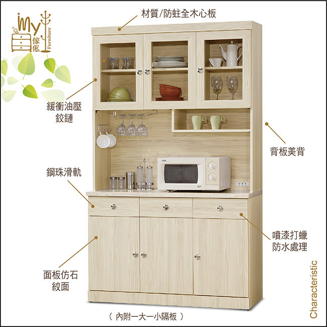 MY傢俬 基本設計淺色4尺隔間餐櫃 簡約基本款設計木質風格,採木心材材質精製而成,抽屜收納可整齊收納~ 平凡的居家多了不同的變化,不論是何種居家風格都能輕易搭配組合! *此商品不需DIY組立