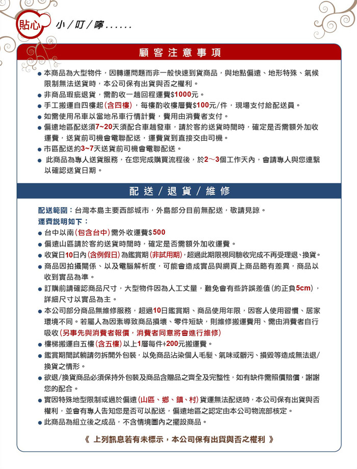 PS-此商品配送區域限基隆至新竹市區(其他地區需加價)